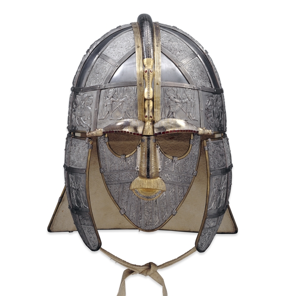 Since the early 7th century AD England, a ship-burial at Sutton Hoo lay undisturbed until the mid 20th century. When it was excavated by archaeologists the spangenhelm they found was without doubt one of the most beautiful pieces of armour ever seen. The original Sutton Hoo spangenhelm and a replica spangenhelm are now on display in the British Museum on London. On top of a basic structure there is masses of ornamentation. This was cleaqrly the helmet of a very powerful man.